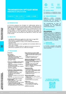 longueur d’onde (WDM) en transmission sur fibre. Elle aborde aussi ses profit de cette formation.